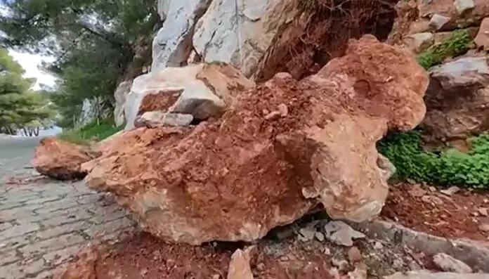Κατολίσθηση με αποκόλληση βράχων σημειώθηκε στην Ακροναυπλία στο Ναύπλιο την Δευτέρα 16 Δεκεμβρίου.