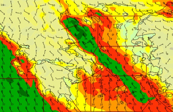 Α. Θυελλώδεις βορειοδυτικοί άνεμοι εντάσεως 8 με 9 και πρόσκαιρα με ριπές έως 10 μποφόρ θα πνέουν από τις πρωινές ώρες του Σαββάτου (18-11-23) στα δυτικά και βαθμιαία και στα ανατολικά πελάγη. Επίσης πολύ ισχυροί βορειοδυτικοί άνεμοι θα πνέουν σε αρκετές ηπειρωτικές περιοχές κυρίως της Μακεδονίας και στα ανατολικά τμήματα της Θεσσαλίας και της Εύβοιας. Οι άνεμοι σταδιακά θα εξασθενήσουν από το απόγευμα της Κυριακής (19-11-23).