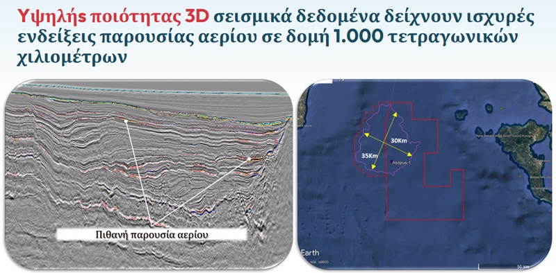 Η “ακτινογραφία” αυτή προέκυψε από τις τρισδιάστατες σεισμικές έρευνες που πραγματοποιήθηκαν το 2022 σε έκταση 1.000 τετραγωνικών χιλιομέτρων από τις οποίες προσδιορίστηκε, αφενός, ο στόχος του “Ασωπού” σε βάθος 4.622 μέτρων και αφετέρου η εκτίμηση για το δυναμικό της περιοχής που φθάνει στα 270 δισ. κυβικά μέτρα φυσικού αερίου. Μέγεθος τεράστιο για τα ελληνικά δεδομένα (καθώς η ετήσια κατανάλωση της χώρας μας κυμαίνεται στα 6-7 δισ.), ακόμη και αν ληφθεί υπόψη ότι αντλείται το 50 – 60 % της συνολικής ποσότητας.