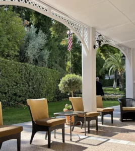 Υπάρχουν αίθουσες υποδοχής, τραπεζαρία και χώροι συνεδριάσεων, όλα επιπλωμένα έτσι ώστε να αντιπροσωπεύουν την αμερικανική κουλτούρα, με σεβασμό στις ελληνικές καλλιτεχνικές παραδόσεις.