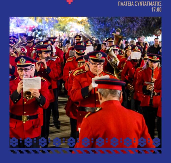 Η βραδιά ξεκινά στις 17.00 με αγαπημένες χριστουγεννιάτικες μελωδίες από τη Big Band του Δήμου Αθηναίων. Η Φιλαρμονική Ορχήστρα του Δήμου θα κάνει μία γιορτινή «παρέλαση» από το σιντριβάνι της Ερμού στις 18.00, έως την πλατεία Συντάγματος, προσκαλώντας τον κόσμο να ακολουθήσει τη μουσική και να γίνει μέρος της μεγάλης χριστουγεννιάτικης συνάντησης.