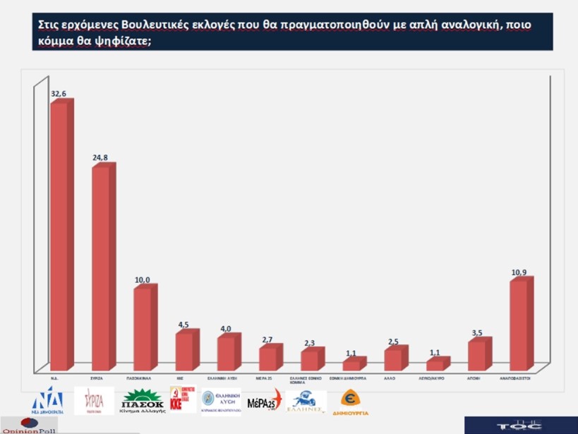 Με τους Αναποφάσιστους να είναι στο 10.8% ( 11.3%)