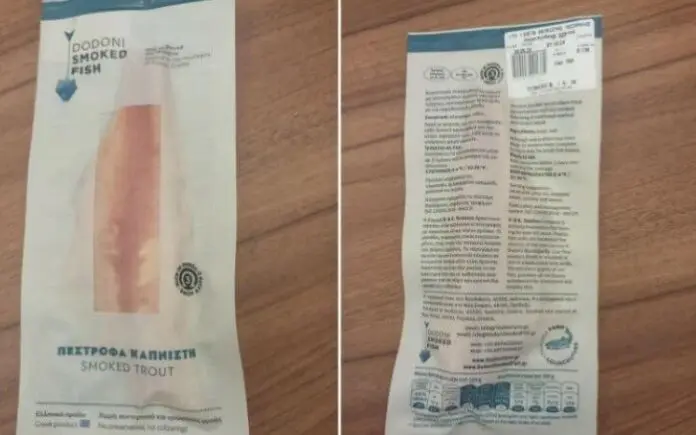 Συγκεκριμένα, ο ΕΦΕΤ και ειδικότερα η Περιφερειακή Διεύθυνση Ηπείρου, κατά τη διενέργεια ελέγχων προέβη σε δειγματοληψία καπνιστής πέστροφας, με την εμπορική ονομασία «ΠΕΣΤΡΟΦΑ ΚΑΠΝΙΣΤΗ DODONI» με αριθμό παρτίδας 01280524 και ημερομηνία λήξεως 07/10/2024, η οποία παράγεται και συσκευάζεται στην Ελλάδα από την επιχείρηση TSIALIOS FARM ΤΣΙΑΛΙΟΣ ΒΑΣΙΛΕΙΟΣ & ΚΩΝ/ΝΟΣ ΟΕ που εδρεύει στην Σινώπη Πρέβεζας.