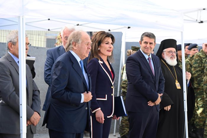 «Γιατί εδώ χτυπάει πιο δυνατά η καρδιά της Ελλάδας, γιατί όλοι οφείλουμε να συμβάλλουμε στον αγώνα που δίνουν οι Ένοπλες Δυνάμεις μας για την ενίσχυση της ασφάλειας της πατρίδας μας με όποιον τρόπο μπορούμε» σημείωσε η κ. Αγγελοπούλου στον σύντομο χαιρετισμό που απηύθυνε.