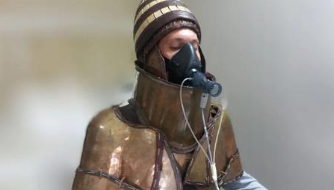 Αντίγραφο ολόσωμης χάλκινης πανοπλίας 3.500 ετών, μελετήθηκε στο πανεπιστήμιο Θεσσαλίας, την οποίαν φόρεσαν εκπαιδευμένοι Έλληνες πεζοναύτες ακολουθώντας ένα απαιτητικό πρωτόκολλο προσομοίωσης μάχης.