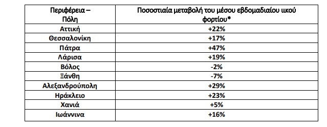 Ποσοστιαία μεταβολή στη μέση συγκέντρωση του ιικού φορτίου του SARS-CoV-2 στα