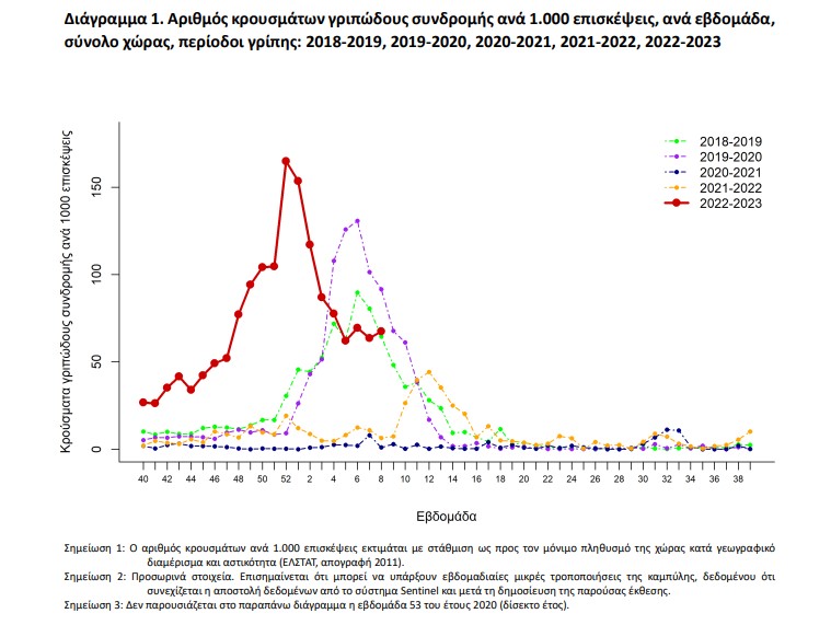✓ η θετικότητα για γρίπη στην κοινότητα παρουσίασε αύξηση
