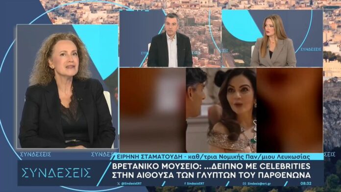 Σφοδρή κριτική για το δείπνο με διασημότητες που πραγματοποιήθηκε στην αίθουσα των Γλυπτών του Παρθενώνα, στο Βρετανικό Μουσείο άσκησε η Eιρήνη Σταματούδη, καθηγήτρια Νομικής του Πανεπιστημίου Λευκωσίας, λέγοντας στο ΕΡΤnews ότι το Μουσείο «αντιμετωπίζει τα Μάρμαρα ως πηγή εσόδων» και όχι ως μνημείο παγκόσμιας πολιτιστικής κληρονομιάς. Παράλληλα επανέλαβε την άποψη, ως μέλος της συμβουλευτικής επιτροπής για την επανένωση τους, ότι «για εμάς ο στόχος είναι η επανένωση των Γλυπτών, όχι ο προσωρινός δανεισμός τους».