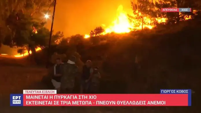 Μάχη με τις φλόγες έδιναν όλη τη νύχτα οι πυροσβεστικές δυνάμεις προκειμένου να αναχαιτίσουν τις πυρκαγιές που ξέσπασαν χθες το μεσημέρι στη Χίο.