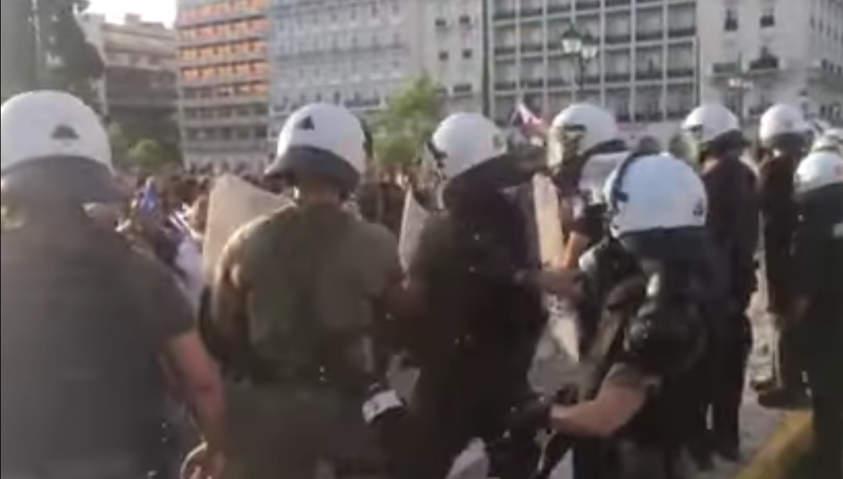Στο Σύνταγμα όπως αναφέρουν σχετικές πληροφορίες του protothema.gr, συγκεντρώθηκαν 200 – 300 άτομα τα οποία κρατούσαν ελληνικές σημαίες και εικόνες και φώναζαν συνθήματα κατά του εμβολιασμού.