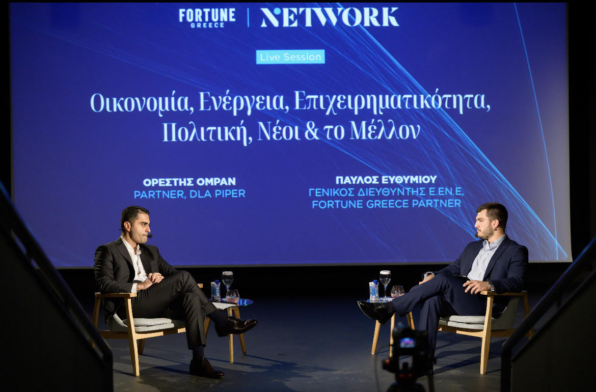 Ενέργεια, οικονομία και επιχειρηματικότητα βρέθηκαν, μεταξύ άλλων, στο επίκεντρο συζήτησης του Ορέστη Ομράν δικηγόρου, επικεφαλής EU-Greek Practice της DLA Piper και του Παύλου Ευθυμίου, γενικού διευθυντή της Ένωσης Ελλήνων Επιχειρηματιών που πραγματοποιήθηκε από το Fortune Greece.