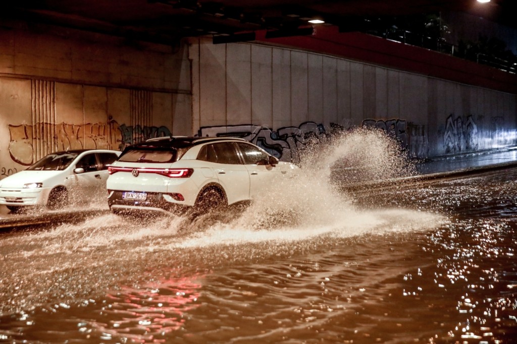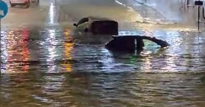 Πλημμύρισε η Σπύρου Λούη στο ύψος της γέφυρας με αποτέλεσμα να διακοπεί η κυκλοφορία: