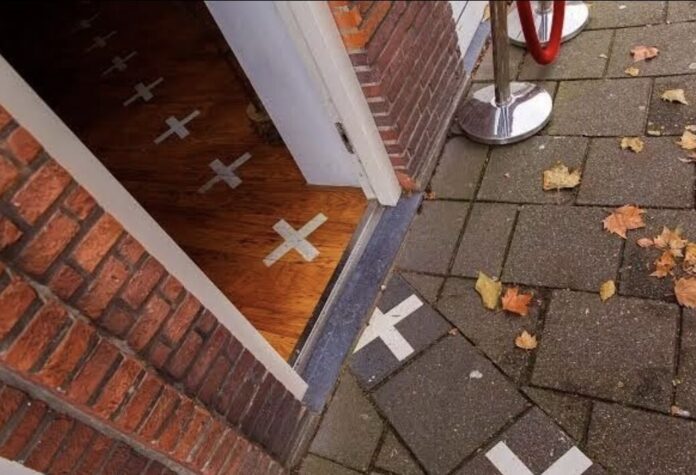 Το συνονθύλευμα των συνόρων διασχίζει δρόμους, καταστήματα, εστιατόρια και σπίτια, σημαδεμένα από δυσδιάκριτους λευκούς σταυρούς στο έδαφος.