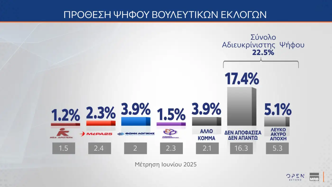 Το σύνολο της αδιευκρίνιστης ψήφου ανέρχεται στο 22,5%