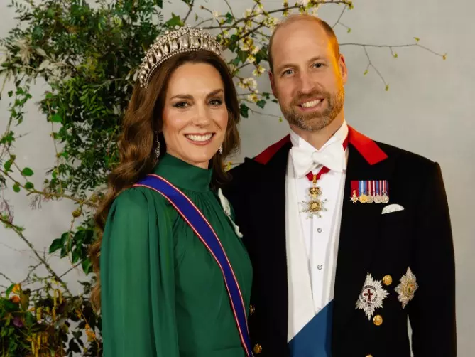 Η Κέιτ Μίντλετον στο επίσημο δείπνο ήταν εκθαμβωτική επιλέγοντας μία σκούρα πράσινη δημιουργία του Andrew Gn. Η τελευταία φορά που η Κέιτ είχε φορέσει δημιουργία του σχεδιαστή με καταγωγή από τη Σιγκαπούρη ήταν το 2023, στο Trooping The Colour εκείνης της χρονιάς. Πρόκειται για μία εντυπωσιακή δημιουργία με πτυχώσεις, ψηλό λαιμό και ιδιαίτερα μανίκια που αναδείκνυε μοναδικά την πριγκίπισσα. Το σύνολό της συνδύασε με ένα ζευγάρι εντυπωσιακά σκουλαρίκια που ανήκαν στη βασίλισσα Ελισάβετ και ένα ζευγάρι πράσινες Manolo Blahnik γόβες που ολοκλήρωσαν το βασιλικό της στιλ. Ο πρίγκιπας Γουίλιαμ ήταν επίσης ιδιαίτερα κομψός φορώντας ένα μαύρο κοστούμι.