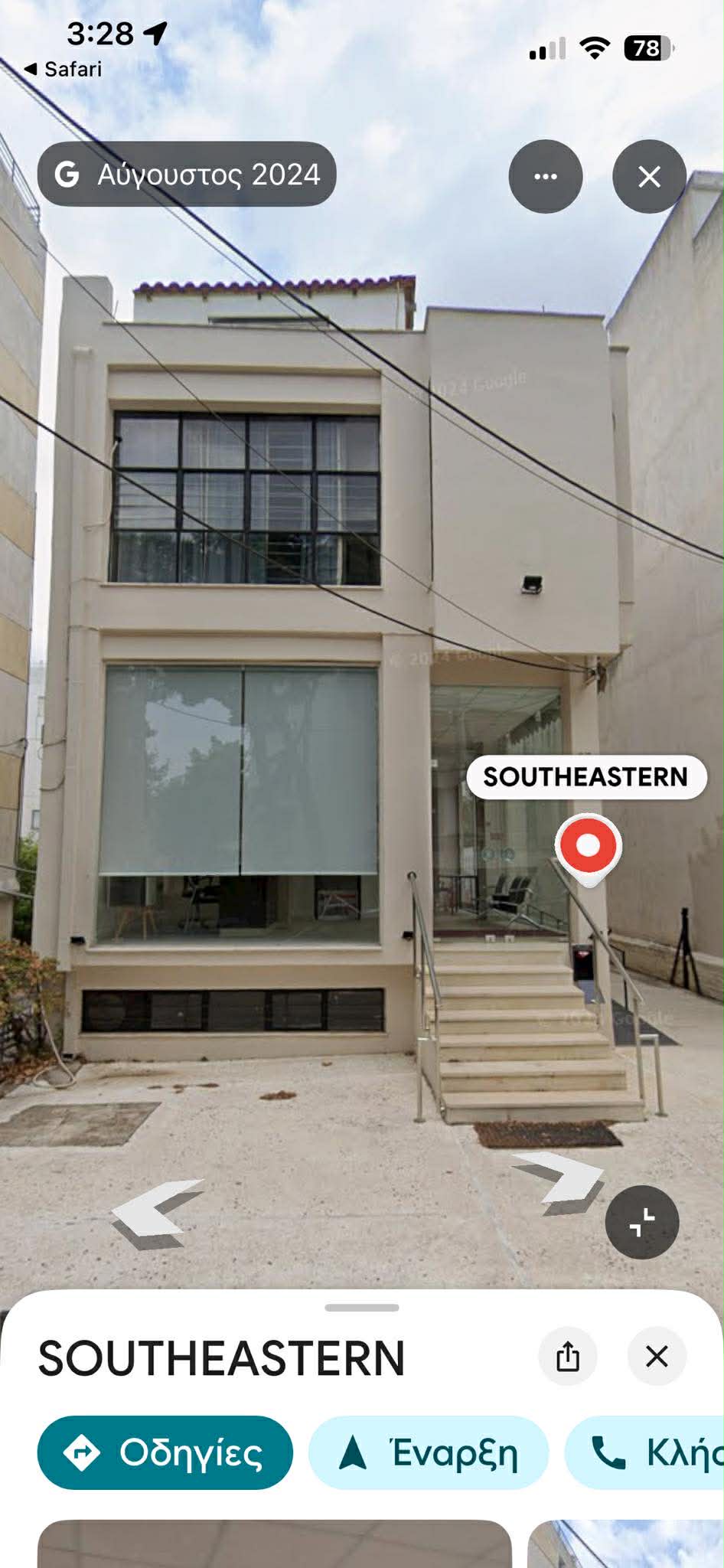 Το ΕΡΓΑΣΤΗΡΙ που σπούδασες είναι αυτό που φαίνεται το καταστατικό του στις φωτογραφίες 5-6-7-8 ως Μονοπρόσωπη ΕΠΕ με το ονομα «ΤΡΙΣΚΕΛΙΩΝ, η οποία εχει και άδεια σνακ μπαρ ; Το κτήριο αυτού του «ΜΟΡΦΩΤΙΚΟΥ ΟΡΓΑΝΙΣΜΟΥ»είναι αυτό στην φωτογραφία 4 στην Πατριάρχου Ιερεμιου 17 στην Αθηνα; Εκεί σπούδασες ; Σε αυτην την πολυκατοικία; Και πότε;». Σε μία αναζήτηση στο διαδίκτυο, βρίσκει κανείς ότι υπάρχει ένας ιστότοπος με αναφορά σε southeastern college στη χώρα μας, το οποίο εμφανίζει ως έδρα διεύθυνση στην Αγία Παρασκευή. Το λιτό κτήριο του είναι αυτό: