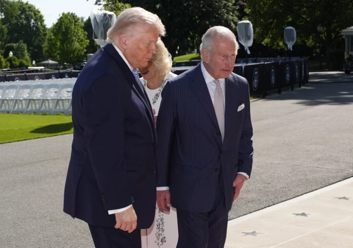 Ο Ντόναλντ Τραμπ και η Μελάνια Τραμπ υποδέχθηκαν στον Λευκό Οίκο τον βασιλιά Κάρολο και τη βασίλισσα Καμίλα, σηματοδοτώντας την έναρξη της επίσημης επίσκεψης του βρετανικού βασιλικού ζεύγους στις Ηνωμένες Πολιτείες.