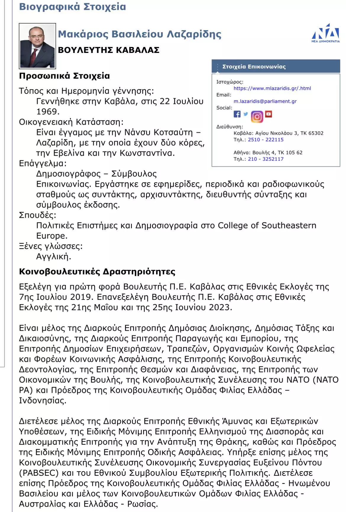 Yπενθυμίζεται ότι στο επίκεντρο της πολιτικής αντιπαράθεσης με τον νέο υφυπουργό Αγροτικής Ανάπτυξης, Μακάριο Λαζαρίδη, πρωταγωνιστούν… οι σπουδές του. Αφορμή, το δημόσια αναρτημένο βιογραφικό του στην ιστοσελίδα στη Βουλή των Ελλήνων, το οποίο αναφέρει : «Σπουδές: Πολιτικές Επιστήμες και Δημοσιογραφία στο College of Southeastern Europe».