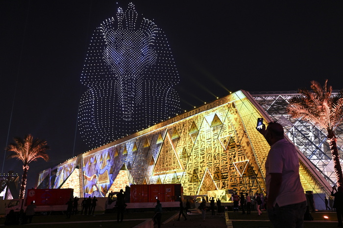 A thousand lights illuminated the sky tonight as the Grand Egyptian Museum hosted a stunning drone show rehearsal ahead of its grand opening — a dazzling display showcasing Egypt’s brilliance on the world stage.#GrandEgyptianMuseum pic.twitter.com/IaiPkaX1Ak