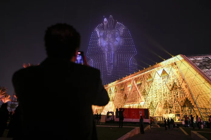 A thousand lights illuminated the sky tonight as the Grand Egyptian Museum hosted a stunning drone show rehearsal ahead of its grand opening — a dazzling display showcasing Egypt’s brilliance on the world stage.#GrandEgyptianMuseum pic.twitter.com/IaiPkaX1Ak