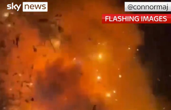 Στο ερασιτεχνικό βίντεο που δημοσιεύτηκε και έγινε viral στα μέσα κοινωνικής δικτύωσης, διακρίνεται μια τεράστια έκρηξη στο σπίτι, φλόγες υψώνονται σε ύψος πολλών μέτρων πάνω από το κτίριο. Σύμφωνα με έναν κάτοικο, πρόκειται για δύο κτίρια εφαπτόμενα το ένα στο άλλο.