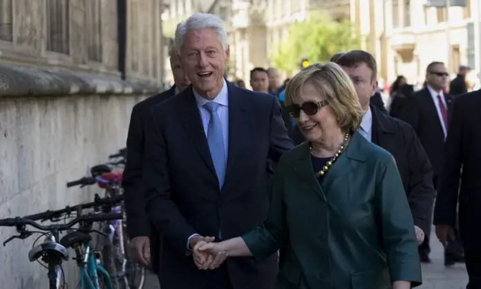 Οι φιλοπαλαιστίνιοι διαδηλωτές τους «στόλισαν» κατηγορώντας τους ότι «διευκολύνουν την γενοκτονία» στη Λωρίδα της Γάζας κι αποκαλώντας «σούπερ αρπακτικό» την πρώην επικεφαλής της αμερικανικής διπλωματίας και «σκ@τό» τον πρώην πρόεδρο των ΗΠΑ.