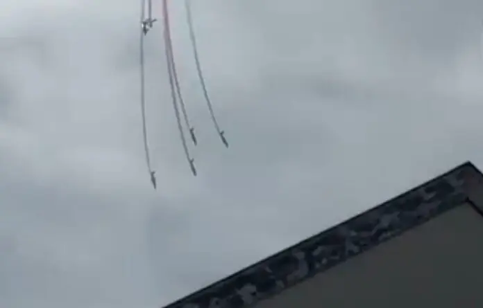 2 avions de la patrouille de France qui se sont heurté pendant l’entraînement ( Ba113 de saint dizier ) les 2 pilotes ont l’air de s’être parachuté pic.twitter.com/psS76fpsYH