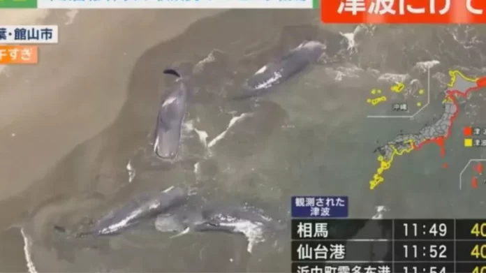 Φάλαινες έχουν εντοπιστεί ξεβρασμένες στις ακτές της Ιαπωνίας από κύματα τσουνάμι, έπειτα από έναν ισχυρό σεισμό που σημειώθηκε στα ανοιχτά της ανατολικής ακτής της Ρωσίας.