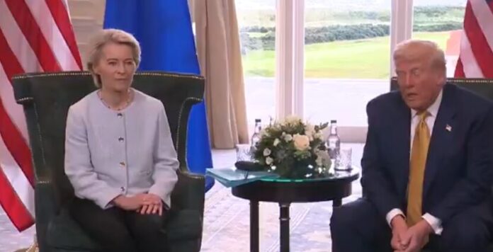 Ο Πρόεδρος των ΗΠΑ, Ντόναλντ Τραμπ ανακοίνωσε μετά τη συνάντηση με την Ούρσουλα φον ντερ Λάιεν ότι οι Ηνωμένες Πολιτείες κατέληξαν σε εμπορική συμφωνία με την Ευρωπαϊκή Ένωση.