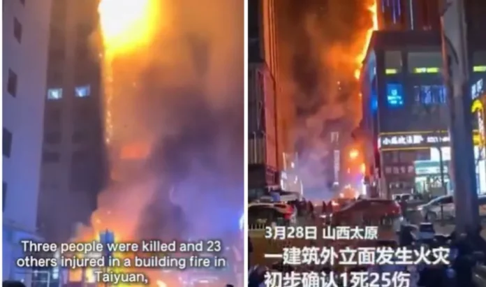 Initial reports confirmed 3 death and 23 injuries, including 7 in critical condition as flames tore through multiple floors of a commercial building near Qinxian North Street. Nighttime footage shows intense fire,… pic.twitter.com/7no8uE0szg