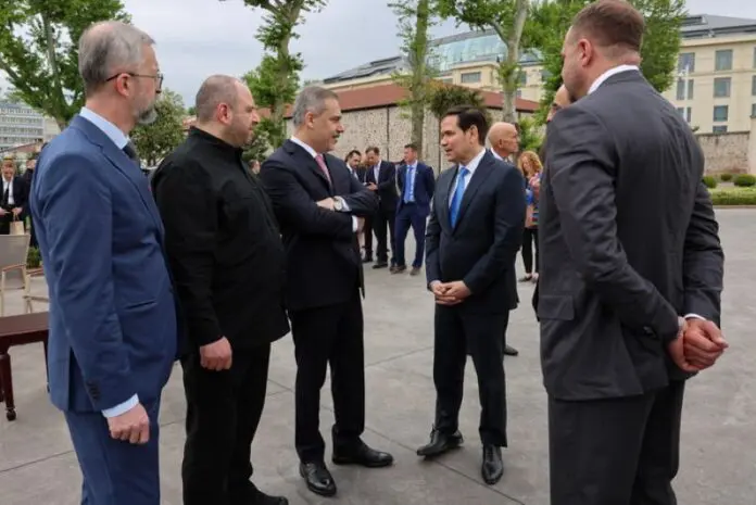 Η συνάντηση πραγματοποιείται στο ανάκτορο Ντολμά Μπαχτσέ και συμμετέχουν, μεταξύ άλλων, ο Αμερικανός υπουργός Εξωτερικών Μάρκο Ρούμπιο, ο Τούρκος ομόλογός του Χακάν Φιντάν, ο πρεσβευτής των ΗΠΑ στην Άγκυρα Τομ Μπάρακ, ο Ουκρανός υπουργός Εξωτερικών Αντρίι Σιμπίχα και ο υπουργός Άμυνας Ρουστέμ Ουμέροφ.