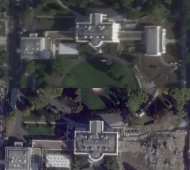 Την Πέμπτη, δορυφορικές εικόνες από την @PlanetLabs έδειξαν ότι η ανατολική πτέρυγα είχε μετατραπεί σε ερείπια.