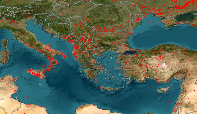 Η Μεσόγειος καίγεται και ο δορυφορικός χάρτης της NASA το αποτυπώνει συγκλονιστικά με ανατριχιαστικές εικόνες.