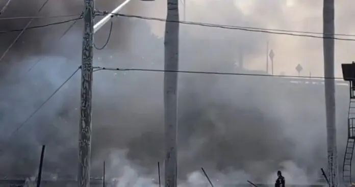 Όπως φαίνεται στα πλάνα υπάρχει πυκνός καπνός πίσω από φοίνικες, στη μία πλευρά ενός αυτοκινητόδρομου.