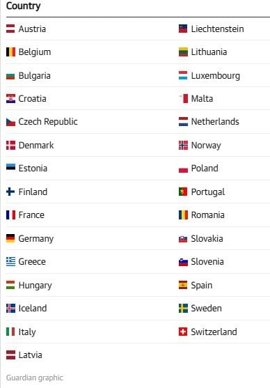 Το σύστημα θα εφαρμοστεί σε όλες τις χώρες Σένγκεν, καθώς και σε Ελβετία, Νορβηγία, Ισλανδία και Λιχτενστάιν, ενώ η Ιρλανδία και η Κύπρος θα συνεχίσουν προσωρινά να χρησιμοποιούν σφραγίδες.