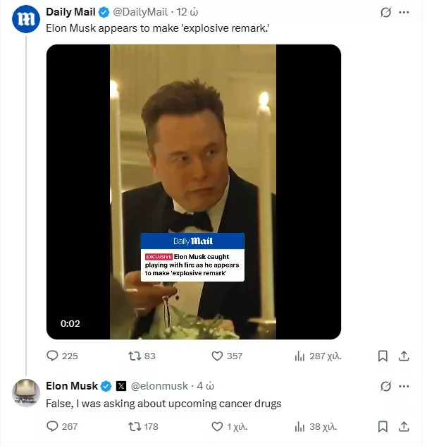 Η απάντηση Μασκ: «Είναι λάθος, μιλούσαμε για καρκίνο»