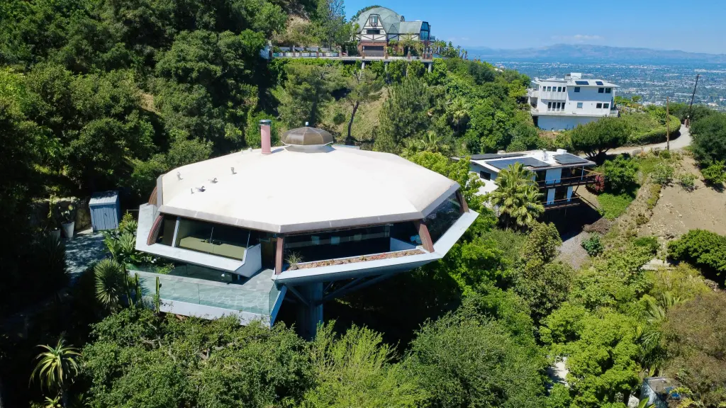 Στηριγμένο πάνω σε μία και μοναδική τσιμεντένια κολόνα ύψους 29 ποδιών και πλάτους μόλις πέντε ποδιών, πάνω από πλαγιά με κλίση 45 μοιρών στους λόφους του Hollywood, αυτό το οκταγωνικό θαύμα μοιάζει να προσγειώθηκε από το διάστημα.