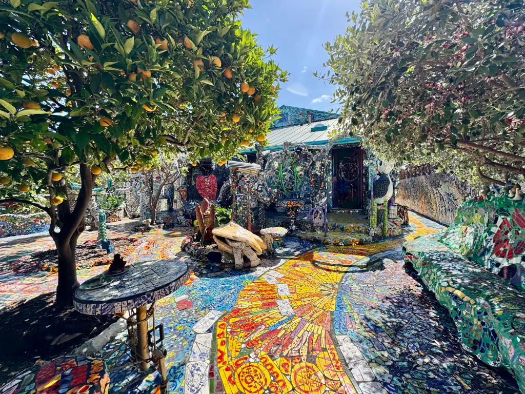 Το σπίτι μεταμορφώθηκε σταδιακά επί δεκαετίες από τους καλλιτέχνες Cheri Pann και Gonzalo Duran, που επένδυσαν σχεδόν κάθε επιφάνεια με χειροποίητα μωσαϊκά.