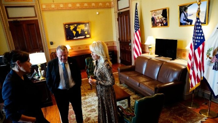 Ο υπουργός Εξωτερικών της Δανίας Λαρς Λόκε Ράσμουσεν και η Γροιλανδή ομόλογός του Βίβιαν Μότζφελντ αποχώρησαν από τον Λευκό Οίκο λίγο πριν από τις 12 το μεσημέρι, τοπική ώρα (19.00 ώρα Ελλάδας), σύμφωνα με έναν φωτορεπόρτερ του Γαλλικού Πρακτορείου. Είχαν φτάσει μιάμιση ώρα νωρίτερα, για συνομιλίες με τον αντιπρόεδρο των ΗΠΑ Τζ. Ντ. Βανς και τον υπουργό Εξωτερικών Μάρκο Ρούμπιο.