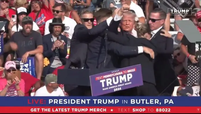 Την ώρα που μιλούσε ο πρώην πρόεδρος ακούγονται οι πυροβολισμοί και ο Τραμπ σκύβει. Η φρουρά του τον βοηθά να απομακρυνθεί ενώ φαίνεται πως έχει τραυματιστεί στο αυτί και στο πρόσωπό του υπάρχουν αίματα.