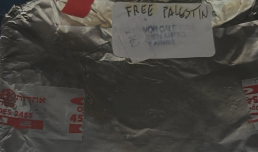 Κατά την διάρκεια της πτήσης, ένας από τους επιβάτες πήρε τον δίσκο του φαγητού επάνω την συσκευασία του οποίου το σύνθημα «Ελεύθερη Παλαιστίνη» είχε προστεθεί με στιλό.