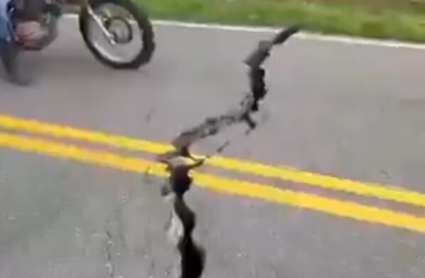 Βίντεο έχουν καταγράψει ζημιές σε σπίτια και άλλες πρόχειρες κατασκευές, ενώ δρόμοι άνοιξαν στα δύο.