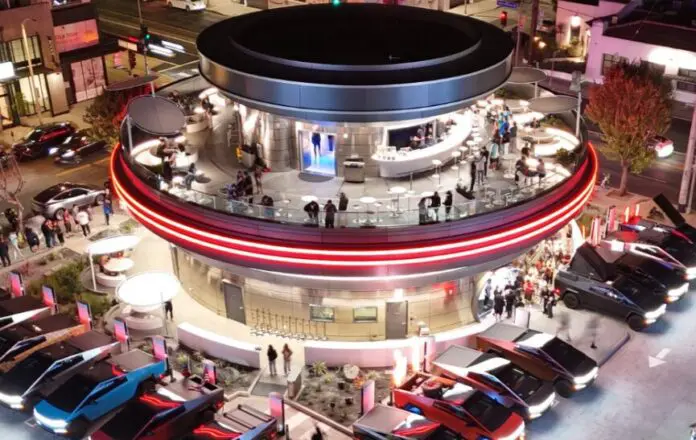 Σχεδιασμένο από τον Έλον Μασκ και να κατασκευάζεται χρόνια, το εστιατόριο συνδυάζει το vintage με το φουτουριστικό. Διαθέτει επίσης, αυτό που η Tesla αποκαλεί τον μεγαλύτερο αστικό σταθμό Supercharger στον κόσμο.