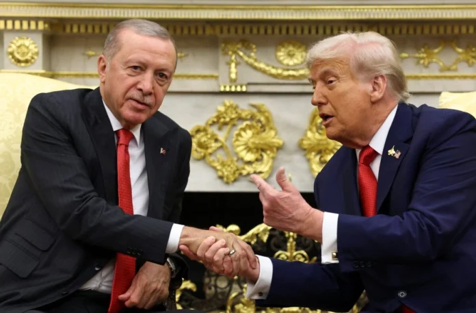 Ο Τούρκος πρόεδρος έφτασε στον Λευκό Οίκο με τους δύο ηγέτες να ανταλλάσσουν θερμή χειραψία, καθώς κατευθύνονταν προς το Οβάλ Γραφείο.