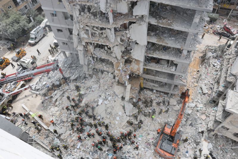 Ισραηλινές ομάδες διάσωσης έψαχναν μέσα σε ερείπια κατοικιών που καταστράφηκαν από ιρανικούς πυραύλους, χρησιμοποιώντας εκπαιδευτικά σκυλιά και εκσκαφείς σε αναζήτηση επιζώντων. Τα θύματα αυτά ανεβάζουν τον συνολικό αριθμό νεκρών από τις ιρανικές επιθέσεις στο Ισραήλ από την Παρασκευή σε 13.
