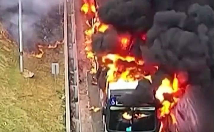 Ένα video κατακλύζει το διαδίκτυο που δείχνει επιβάτες να εγκαταλείπουν ένα λεωφορείο που τυλίχθηκε στις φλόγες στην άκρη ενός πολυσύχναστου δρόμου.