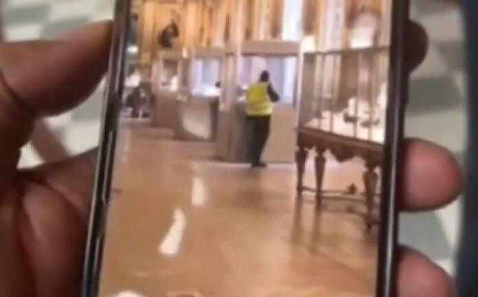 Το BFMTV, δημοσίευσε βίντεο από τη στιγμή που ένας εκ των δραστών με κίτρινο γιλέκο και κουκούλα, φαίνεται να «πριονίζει» γυάλινη προθήκη στην φημισμένη Αίθουσα του Απόλλωνα, όπου φυλάσσονται πολύτιμα κοσμήματα και αυτοκρατορικά κειμήλια.