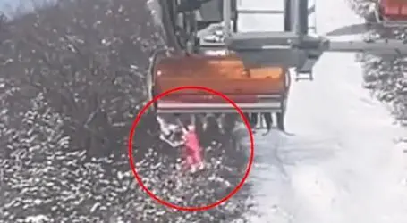 ένα βίντεο που κόβει την ανάσα δείχνει την στιγμή που ένα παιδί κρέμεται από λιφτ σε χειμερινό θέρετρο πριν πέσει από ύψος 12 μέτρων.