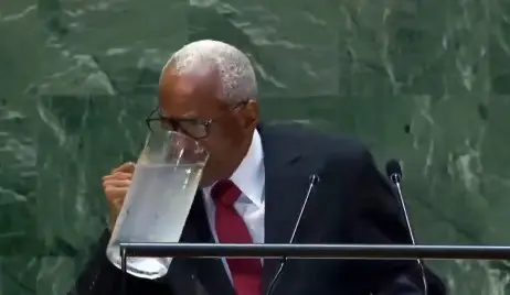 Edgard Leblanc Fils, president of Haiti’s transitional council, accidentally spilled water on himself while drinking from a large jug during his UN General Assembly speech.pic.twitter.com/ePEsE2KEUT