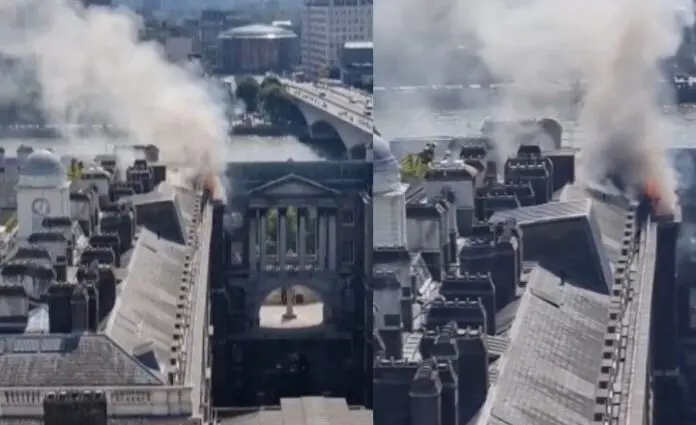 Βίντεο που κυκλοφόρησαν στα μέσα κοινωνικής δικτύωσης δείχνουν ένα πυκνό σύννεφο καπνού να υψώνεται από τη στέγη του μουσείου, ενός ιστορικού κτηρίου που ανάγεται στο 1796 και βρίσκεται στις όχθες του Τάμεση.